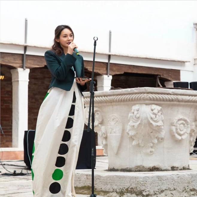방송인 안현모가 24일 인스타그램에 "고 #백남준 선생님이 아니었다면 베네치아 자르디니 공원에 #꼬레아는 없을 뻔했어요. 그렇게 탄생한 #Korea 관의 30년 여정을 축하하는 행사에#지춘희 선생님의 2007 백남준 #추모 컬렉션을 입은 것은 마치 드레스의 달들처럼 별이 정렬한 것 같은 완벽한 모멘트였답니다!"라는 글과 함께 사진을 게재했습니다.