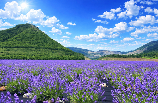 초여름과 초가을에는 약 2만㎡ 규모 라벤더정원이 보랏빛으로 물듭니다. 에메랄드 호수와 보라색 꽃이 함께 어우러지는 장면은 마치 해외 풍경 같습니다.