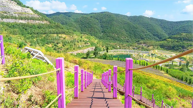 절벽 위에 설치된 두미르 전망대는 길이 24.6m, 폭 3m 규모입니다. 끝에 서면 청옥호와 절개면이 한눈에 펼쳐집니다. 아래를 내려다보는 순간, 이곳이 과거 폐광이었다는 사실이 더 또렷하게 느껴집니다.
