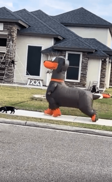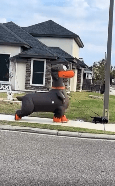 줄을 끌고 나타난 대형 강아지 풍선… 인 줄 알았는데, 그 안엔 사람이! 반전 넘치는 이색 산책 장면