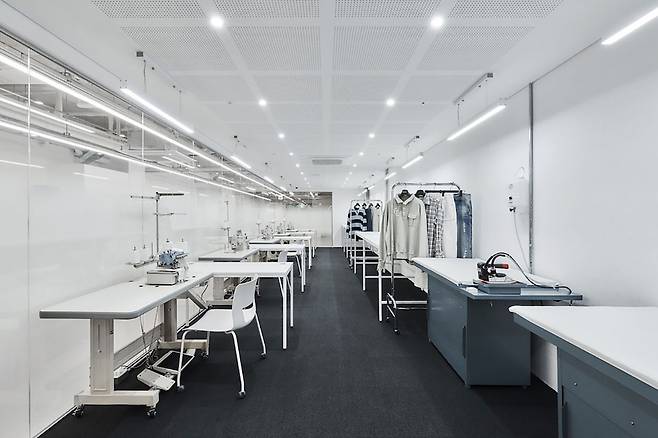 이 공간에는 디자이너, 모델, 포토그래퍼, 유튜버가 한데 모입니다. 현장에서 원단을 고르고, 자리에서 바로 콘텐츠를 촬영하며 무신사 플랫폼에 등록하는 거죠.