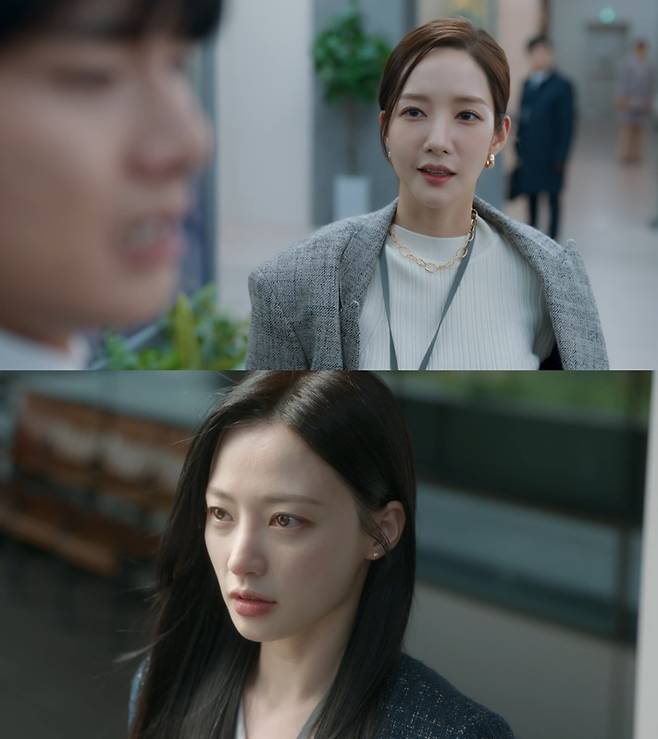 자신의 남자친구(이이경)와 몰래 연애를 하는 송하윤의 비밀을 회사 안에서 폭로한 박민영은 뒤 이어 업무 중 일어난 사고의 책임까지 자신에게 떠넘기는 송하윤의 잘못을 모두 공개했다. 궁지에 몰린 송하윤이 박민영 앞에 무릎을 꿇었고, 그 과정이 팽팽한 긴장감 속에 펼쳐졌다. 박민영의 '속사포 복수'가 보는 이들에게 그야말로 '핵 사이다'같은 통쾌함을 선사했다.