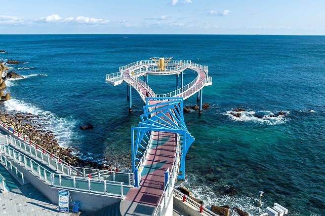 바다를 유리 전망대 밑에서 감상할 수 있는 동해시 가볼 만한 곳인데요. 스카이워크 위를 걸으며 발 아래로 부딪히는 파도를 아찔하게 내려다볼 수 있어 짜릿한 체험을 제공합니다.