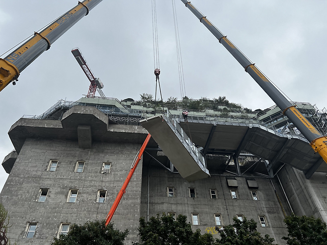 16개 강철 기둥으로 지탱하는 증축을 거쳐 호텔, 레스토랑, 카페, 사교 공간을 포함시키며 벙커를 현대적인 랜드마크로 바꿨다.