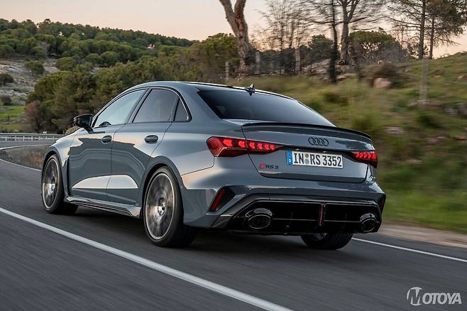 '더 뉴 아우디 RS 3'는 2.5리터 5기통 가솔린 직분사 터보차저(TFSI) 엔진과 7단 S 트로닉 자동변속기를 탑재, 최고출력 400마력, 최대 토크 50.99kg·m의 강력한 성능을 자랑한다. 정지 상태에서 시속 100km/h까지 단 3.8초, 최고 속도는 280km/h(안전 제한 속도)에 이른다. 연비는 복합 기준 8.9km/l(도심 7.7km/l, 고속도로 11.1km/l)다. 여기에 아우디의 상징인 사륜구동 시스템 콰트로(quattro)가 탑재되어, 어떤 도로와 주행 환경에서도 정밀하고 역동적인 드라이빙 경험을 선사한다.