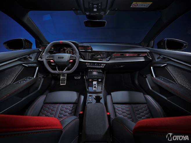'더 뉴 아우디 RS 3'에는 다양한 첨단 안전 및 편의 사양이 기본 탑재되어 일상 속에서도 탁월한 편의성과 안전성을 제공한다. '더 뉴 아우디 RS 3'에는 12.3인치 버츄얼 콕핏 플러스, MMI 내비게이션 플러스(터치스크린), 아우디 스마트폰 인터페이스가 기본 탑재된다. 또한, SONOS 3D 프리미엄 사운드 시스템(16채널 15스피커, 680와트 출력)은 생생한 음향으로 드라이빙의 즐거움을 한층 높인다. 이 외에도 3존 자동 에어컨, 전동·열선·눈부심 방지 사이드 미러, 아우디 드라이브 셀렉트 등 다양한 첨단 기능이 일상 주행을 더욱 안전하고 편리하게 만들어준다.