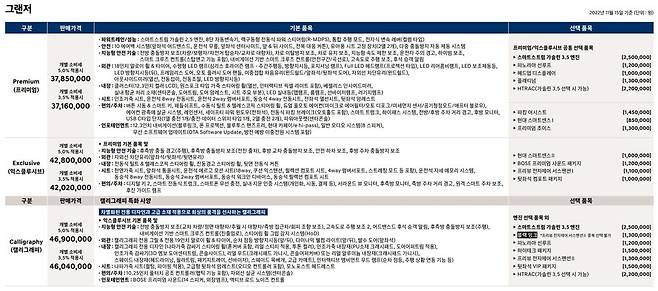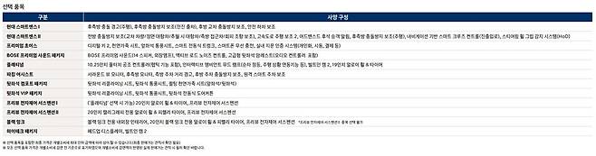 블랙잉크와 모든 옵션을 더하거나 프리뷰 전자제어 서스펜션II에 모든 옵션을 더해도 가격은 5,710만원으로 동일하다.
