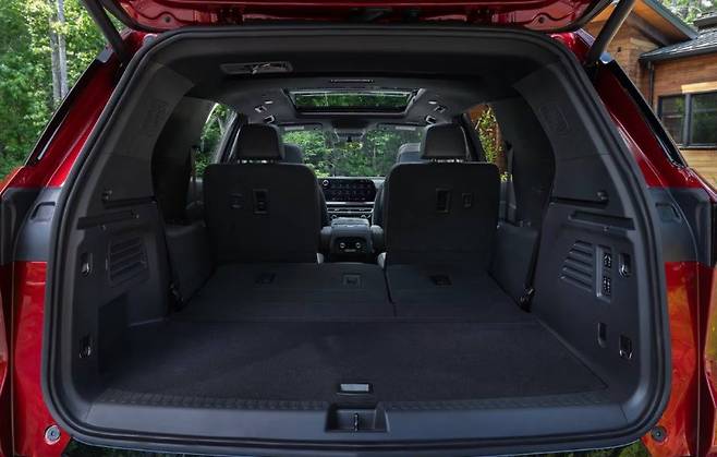 쉐보레 트래버스는 원래부터 넉넉한 실내 공간과 압도적인 적재 능력이 가장 큰 장점이었습니다. 이번 쉐보레 트래버스 풀체인지 역시 이러한 장점을 고스란히 이어받아, 동급 SUV 중에서도 단연 돋보이는 공간 활용성을 자랑합니다. 2열과 3열 모두 성인이 편안하게 탑승할 수 있는 충분한 레그룸과 헤드룸을 제공하여 장거리 이동 시에도 불편함 없이 쾌적한 여행을 즐길 수 있습니다. 특히 3열 공간은 단순히 구색 맞추기가 아닌, 실제 탑승자를 고려한 설계로 팰리세이드나 텔루라이드와 비교해도 전혀 부족함이 없는 수준입니다.