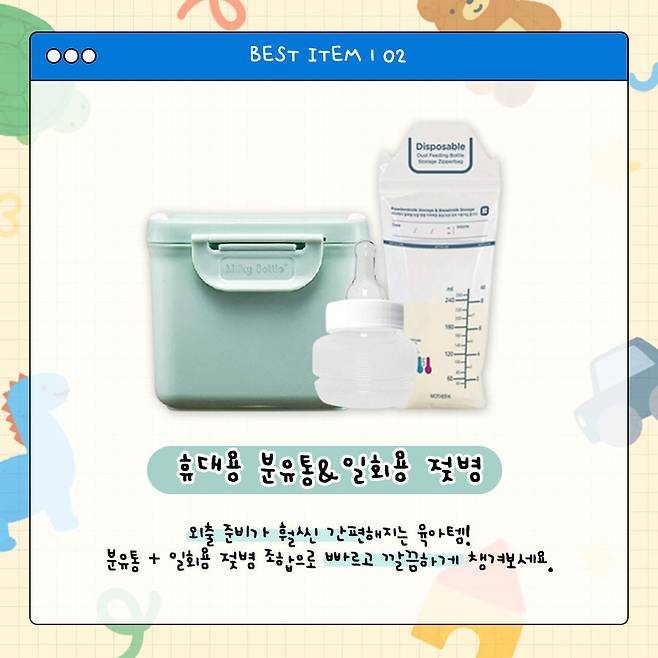 분유통이랑 함께 가방에 정리해서 넣어요."