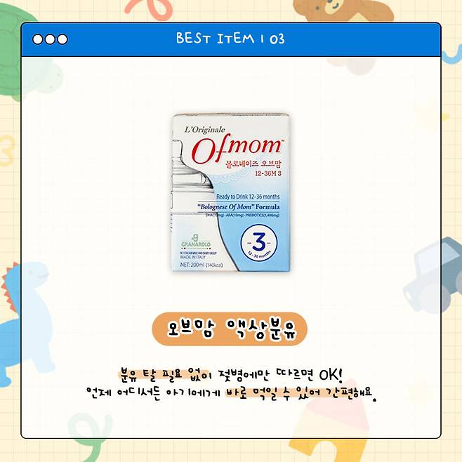 외출할 땐 오브맘 팩형 액상 분유를 사용하는데,