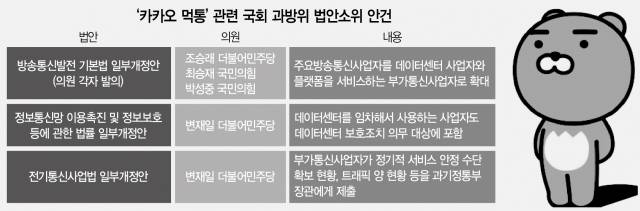 카카오(035720) 먹통 사태로 데이터센터 관리를 강화해야 한다는 관련 법 개정이 속도를 내고 있다.