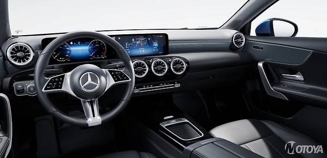 더 뉴 A-클래스의 실내에서 가장 눈에 띄는 부분은 독립형 (free-standing) 더블 스크린 및 최신형 다기능 스포츠 스티어링 휠이다. 독립형 더블 스크린은 10.25인치 디지털 계기반 두개가 이어져 마치 하나의 와이드 스크린처럼 보이는 효과를 줘 실내에 넓은 공간감을 선사하며, 터치스크린으로 제작돼 더욱 편리하게 사용할 수 있다. 가죽 소재의 최신형 다기능 스포츠 스티어링 휠은 새롭게 디자인된 센터 콘솔과 조화를 이루며, 휠 좌우에는 터치 컨트롤 버튼이 탑재돼 보다 편리한 차량 조작에 도움을 준다. 뿐만 아니라 다채로운 시트 및 트림 라인업이 제공돼 고객이 자신의 개성을 충분히 드러낼 수 있게 했다. 더 뉴 A-클래스의 컴포트 시트에는 새로운 엠보싱 기술로 처리된 블랙 컬러의 아티코(ARTICO) 가죽이 기본으로 적용됐으며, 따뜻한 분위기를 더하는 '마키아토 베이지(macchiato beige)'와 트렌디한 '세이지 그레이(sage grey)' 컬러가 새로운 시트 옵션으로 추가됐다. 또한, 계기판과 차량 도어에는 새로운 다크 카본 파이버 룩 트림이 적용돼 고급스러움과 모던함을 더했다.
