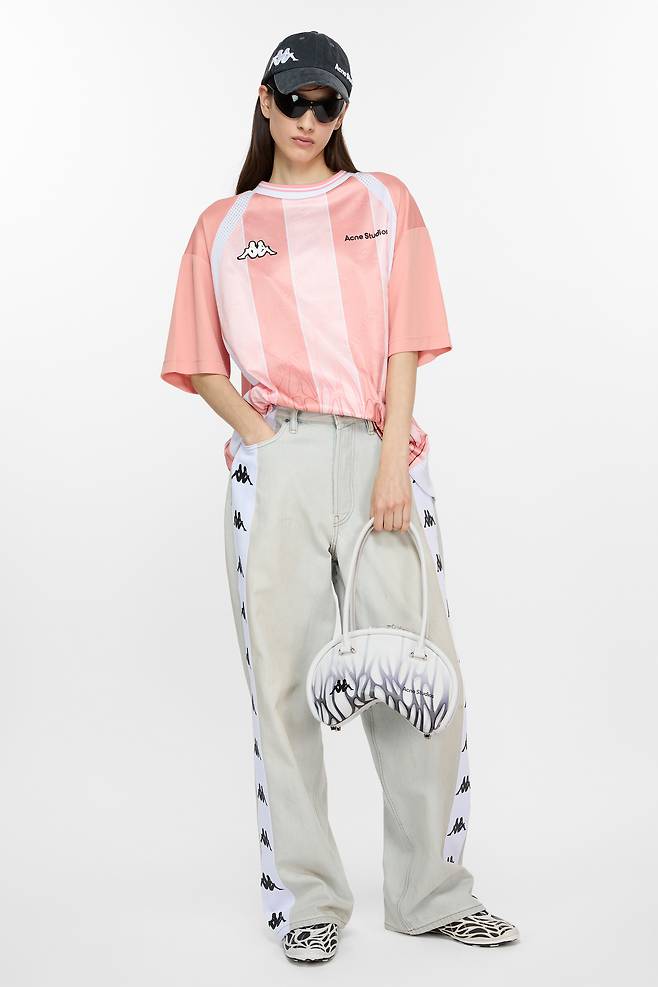 이번 캡슐 컬렉션은 레트로 축구 유니폼에서 영감을 받아 전통적인 스포츠 웨어 코드와 아크네 스튜디오의 아이코닉한 실루엣을 결합했다. 주요 아이템으로는 브랜드를 상징하는 핑크 컬러에 불꽃 패턴과 Kappa, Acne Studios 로고를 더한 축구 저지, Kappa 로고 테이핑을 다리 옆선을 따라 배치한 페일 워시 데님과 트랙 팬츠, 그리고 축구 선수들의 기능성 베이스 레이어를 연상시키는 세컨드 스킨 티셔츠가 있다.