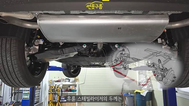 후륜 스테빌라이저는 22mm 두께로 국내 대형차들과 비슷한 사이즈를 자랑한다.