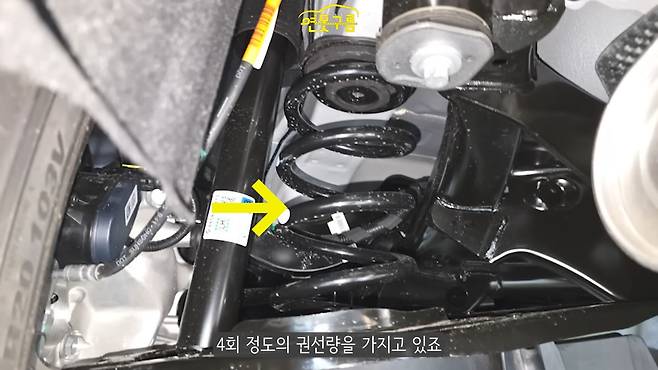 반면 리어 스프링은 4회 정도의 짧은 권선량을 가져 2열 공간 확보에 주력한 설계다. 다만 단단한 승차감을 개선하려면 스프링 상단 패드 두께나 소재를 보강할 필요가 있다는 지적이다.