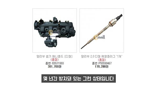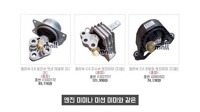 또 다른 단점으로는 국내에서 부품 수급이 좀 어렵습니다. 사실 이거는 쉐보레 차량을 중고로 구매하 시려는 차주님들께서 가장 궁금해 하시는 거에요. 보통 부품을 파는 그런 사이트 같은 데를 보면 엔진 미미나 미션 미미와 같은 약간 엔진 고정 부품들처럼 간단한 부품도 구하기 힘들어요.