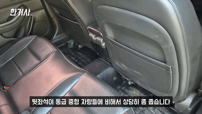 그리고 이 차량의 가장 큰 단점이라고 생각을 하는 게 뒷좌석이 동급 중형 차량들에 비해서 상당히 좀 좁습니다. 중형차인데 체감상으로는 아반떼보다도 좁게 느껴지는 경우도 있습니다. 실제로 뒤에 사람을 태웠을 때 그래도 중형차다 보니까 크게 불편하다는 정도는 아니지만, 그래도 좀 좁다는 의견은 많았습니다.