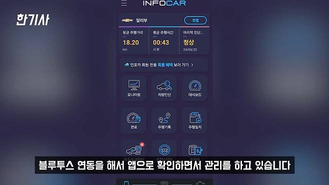 그런 식으로 이제 알아야 되는데, 보통 이 차를 타시는 분들은 사제 제품을 좀 다셔 가지고 핸드폰 앱이라든지, 아니면 이쪽에 모니터 같은 걸 설치해서 확인을 하시면 됩니다. 연동시켜서요. 저 같은 경우에는 블루투스 연동을 해가지고 앱으로 확인하면서 관리를 하고 있습니다.