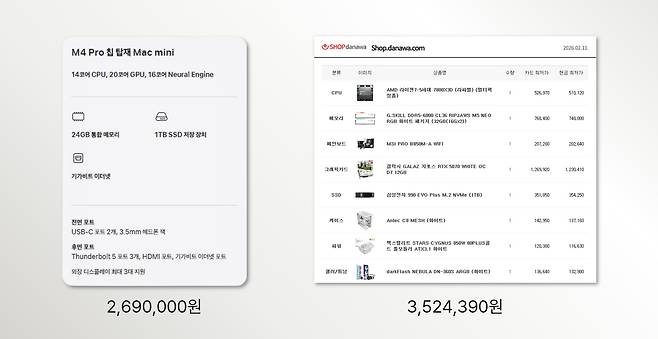 세상이 미쳐 돌아가는지 맥이 가성비로 불리는 시대가 되었다. AI가 촉발한 칩플레이션, 안 그래도 비쌌는데 더 비싸진 그래픽카드, 여기에 불안한 환율과 원자재의 몸값 상승이 더해지며 어지간한 가격으로는 PC 하나 맞추기가 어려워졌다.