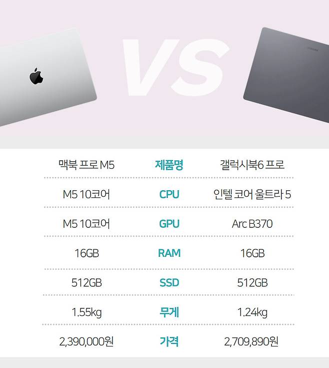 결론을 내려보면, 갤럭시 휴대폰을 쓰고 하루종일 휴대하면서 노트북을 활용해야 하는 대학생이라면 갤럭시북6 프로를 권한다. 아이폰을 사용하고 맥 OS를 써본 경험이 있는 대학생이라면 가격 메리트와 아이폰과의 연동성도 좋은 맥북 프로 M5 모델을 추천한다.