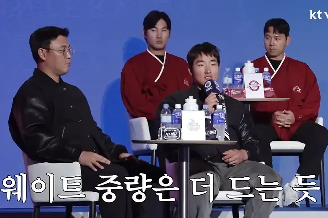 KT 위즈의 괴물 타자 안현민이 프로 데뷔 첫 풀타임 시즌을 앞두고 특별한 자신감을 드러냈다. 26일 서울 롯데호텔 월드에서 열린 2026 KBO 미디어데이에서 안현민은 야구팬의 질문에 재치 있는 답변으로 웃음을 자아냈다. 김도영 선수보다 더 좋을 것이라고 자신하는 기록이 있느냐는 질문에 그는 잠시 말을 아꼈다가 "WBC 대표팀에서 함께 운동을 했는데, 웨이트 트레이닝 중량만큼은 내가 더 많이 하는 것 같다"고 답했다.