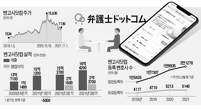 로톡은 연세대 법대 출신인 김본환 대표가 2012년에 세운 리걸테크 스타트업 로앤컴퍼니가 운영하는 법률 플랫폼이다. 자사 플랫폼에 등록된 변호사의 주요 경력, 상담 사례, 수임료 등을 공개해 정보 비대칭성을 해소한 것이 특징이며, 온라인 상담, 15분 전화 상담, 30분 방문 상담 등으로 간편하게 법률 상담을 받을 수 있다. 이런 로톡은 2005년 창업한 일본의 리걸테크 기업이자 일본 변호사의 활동 지역, 경력 등을 광고할 수 있는 가장 큰 법률 상담 사이트인 벤고시닷컴을 모델로 설립되었는데, 해당 사이트에서 활동하는 일본의 변호사는 1만 9500여 명으로 일본 전체 변호사의 절반에 해당할 만큼 규모가 크다.