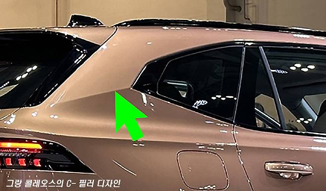 지리의 싱유에L 모델과 그랑 콜레오스의 측면은 전체 차량의 프로파일 라인은 거의 같지만, 거의 모든 차체 부품의 형태가 다릅니다. 앞 모습은 물론이고 뒤 도어 패널과 C-필러에서 샤프한 모서리를 강조한 면 처리의 디자인도 다른 감각을 보여주고 있습니다.