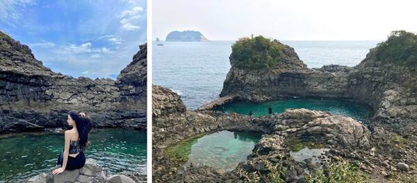 제주에서도 가장 맑은 물과 보석같은 풍경으로 인해 제주 토박이들이 가장 추천하는 곳이 황우지 해안인데요. 자연적으로 만들어진 풀장으로 인해 외부 바닷물과 선녀탕이라고 불리는 못의 물색이 달라 매우 아름다운 풍경을 자랑하는 곳입니다.