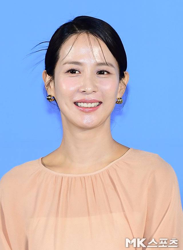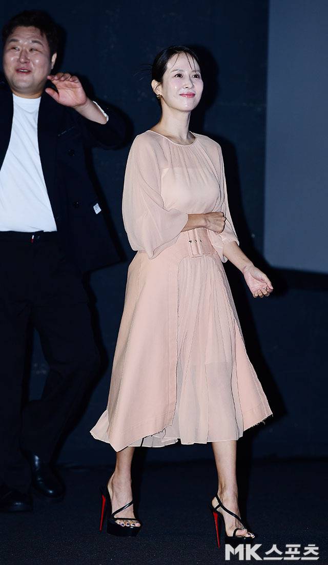 조여정은 은은한 살구빛의 쉬폰 롱 원피스를 착용한 채 등장해 시선을 사로잡았습니다.