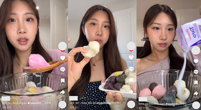 이제는 전 세계 틱톡에서 꿀떡 시리얼 먹방 영상이