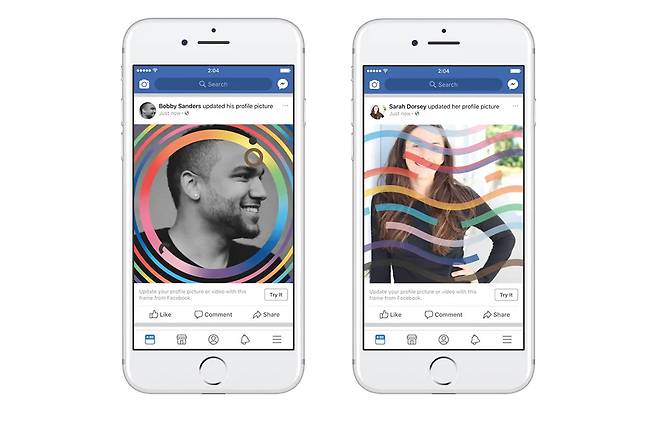 페이스북도 글로벌 기업으로서 오랫동안 ‘프라이드 캠페인’을 진행했는데요. 다양한 사용자들을 위한 프라이드 기능을 통해 LGBTQ+ 커뮤니티를 지지했습니다. 직접 프라이드 기능을 검색해 보니 기존의 프로필 사진 위에 다양한 무지개 이미지를 합성할 수 있는 프레임을 제공하고 있었습니다.