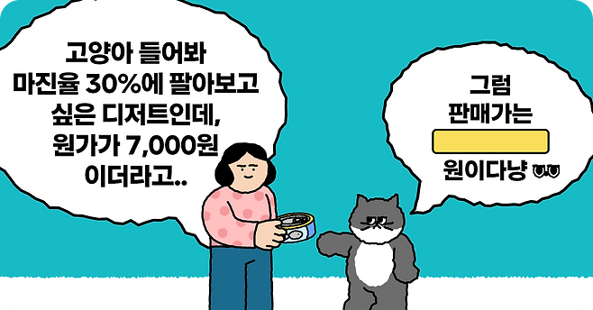 Q. 그림 속 고양이는 판매가를 얼마라고 대답했을까요?