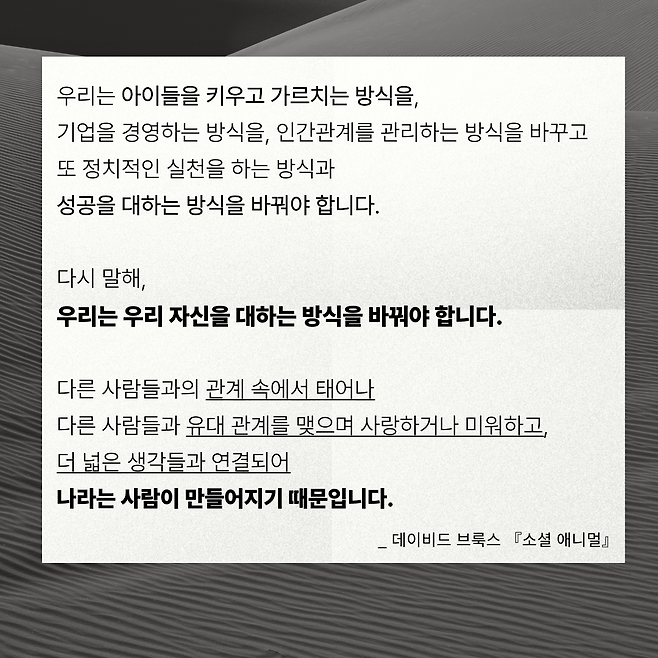 무엇이 우리의 삶을 행복과 만족으로 이끄는가? <소셜 애니멀>을 쓴 데이비드 브룩스는 그 답을 타인과의 깊은 상호작용에서 찾습니다.
