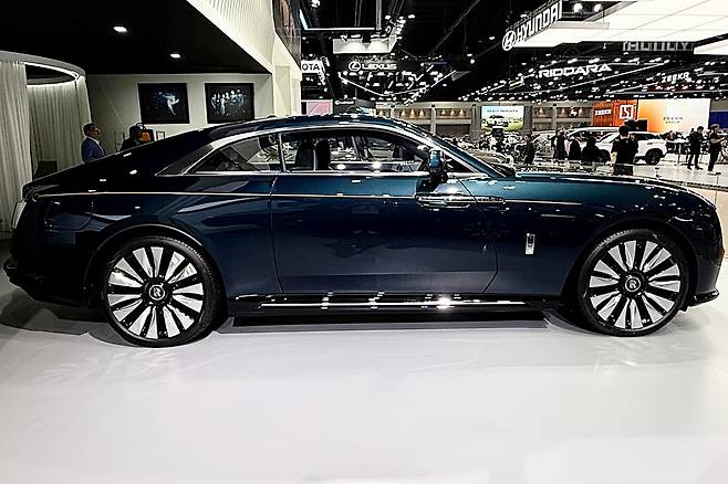 디자인은 화려함을 넘어서 품격 있는 존재감을 드러내는 데 집중돼 있었다. 실내는 전통과 현대가 정교하게 교차했다. 천장에는 '슈팅 스타 헤드라이너'가 설치돼 수천 개의 광섬유가 밤하늘을 연출했고, 조수석 앞쪽 대시보드에는 ‘Spectre’ 이름과 함께 5,500여 개의 별 조명이 은은히 퍼졌다.