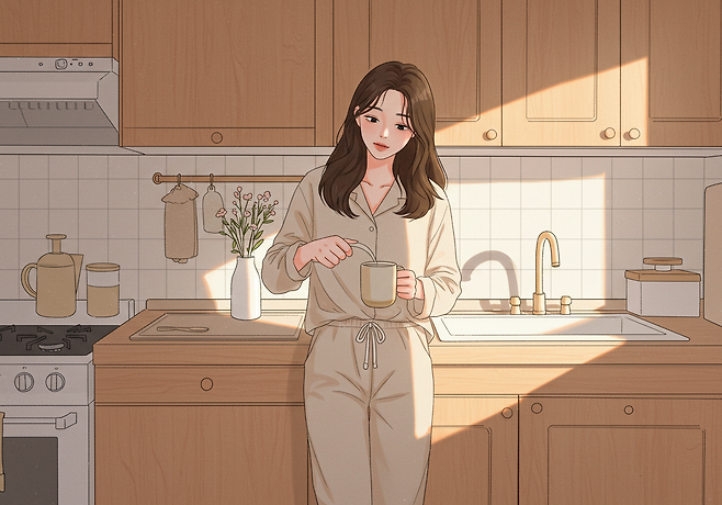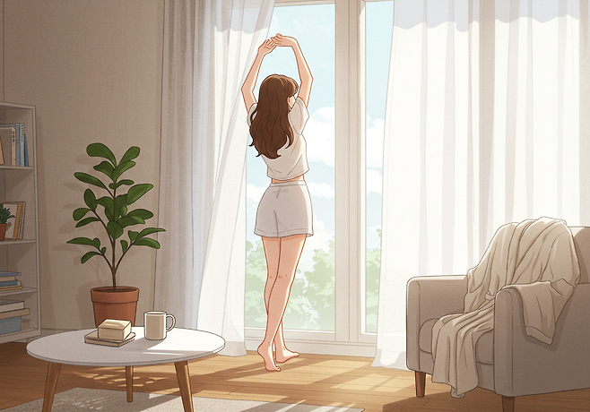 간단한 스트레칭, 따뜻한 물 한 잔, 집 안 정리 같은 작은 루틴을 통해 하루의 균형을 잡습니다.