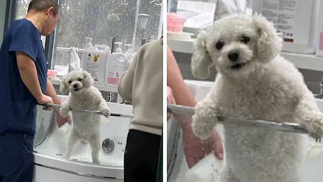 "감히 산책간다고 날 속여놓고 미용실에 왔겠다~"