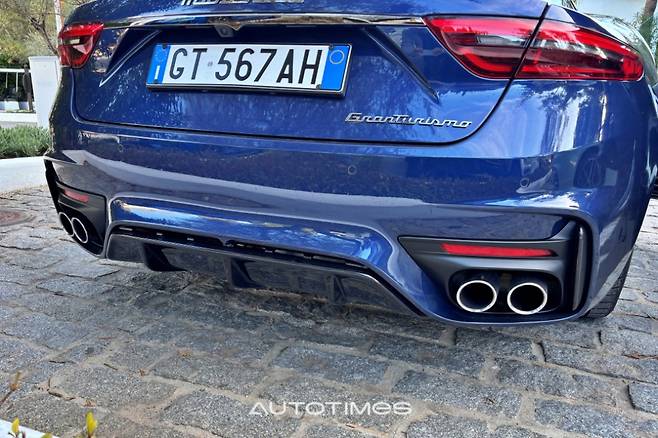 적당한 크기의 세로형 헤드램프는 명확한 인상을 심어주고 마세라티의 거대한 그릴은 그란투리스모와 훨씬 더 잘 어울린다. 자부심을 높이는 삼지창 로고도 상당히 크다. 한껏 부풀린 펜더와 전륜(20인치 265/30), 후륜(21인치 295/30) 휠, 속을 채우는 스포츠 브레이크 시스템도 매우 마음에 든다.