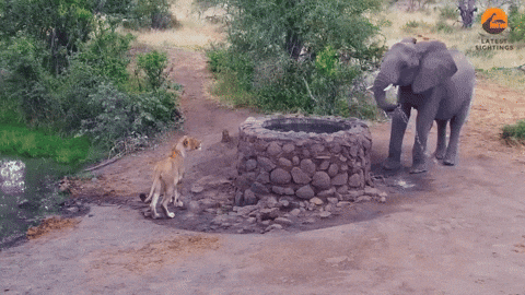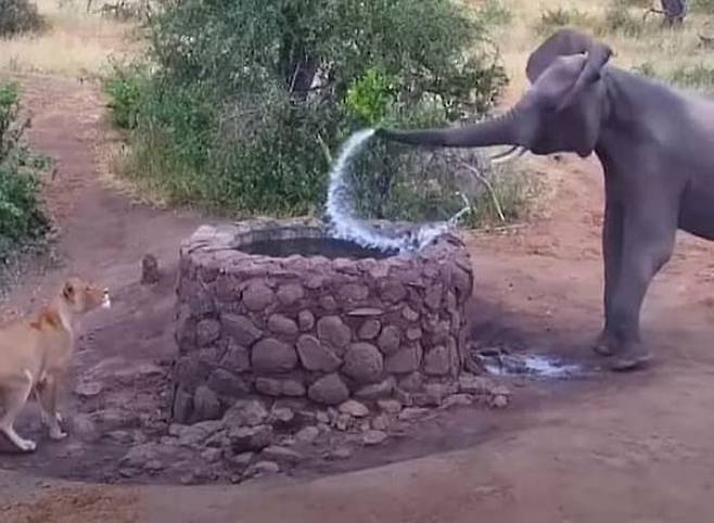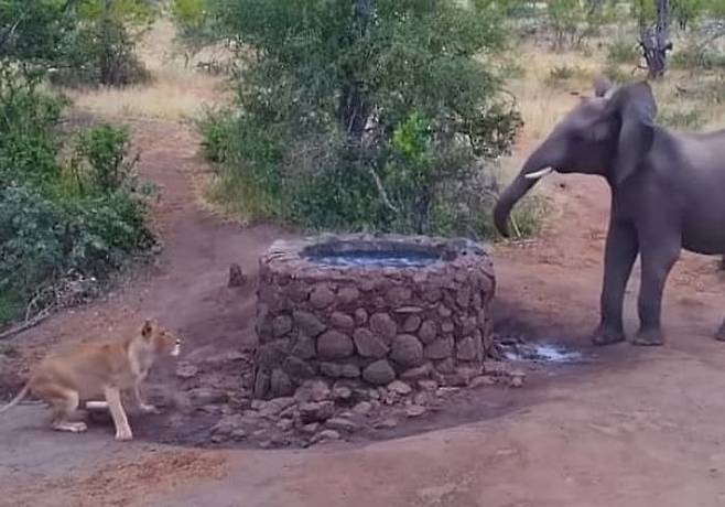 사연은 이렇습니다. 남아프리카공화국 림포포의 한 자연보호구역에서 코끼리와 사자가 우물가를 사이에 두고 대치를 벌이는 현장이 공개가 됐는데요.