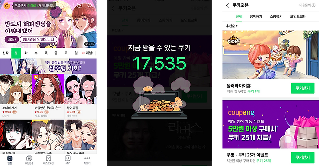 즐겨보는 웹툰을 보다가 다음 화를 미리 보고 싶어서 네이버 쿠키를 구매해 보신 적이 있나요? 🍪 쿠키는 네이버 웹툰&시리즈 작품 감상을 위해 필요한 결제 수단인데요. 웹툰을 보다 보면 다음 내용이 너무 궁금해져서 쿠키를 결제할 수밖에 없을 때가 있잖아요! (몇 편 안 본 거 같은데... 어느새 쿠키가 흔적도 없이 사라져 있죠... 😂) 이렇게 유료 결제를 해서 쿠키를 살 수도 있지만, 무료로 쿠키를 얻을 수 있는 방법도 있어요. 아마 많은 분이 보셨을 것 같은데, 바로 네이버 쿠키오븐 서비스를 이용하는 거예요!