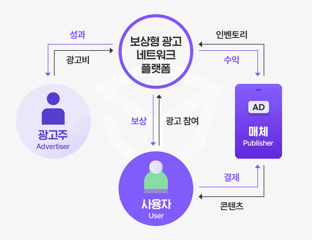2. 오퍼월 광고는 광고주, 매체, 사용자 모두에게 이익이 되는 구조예요.