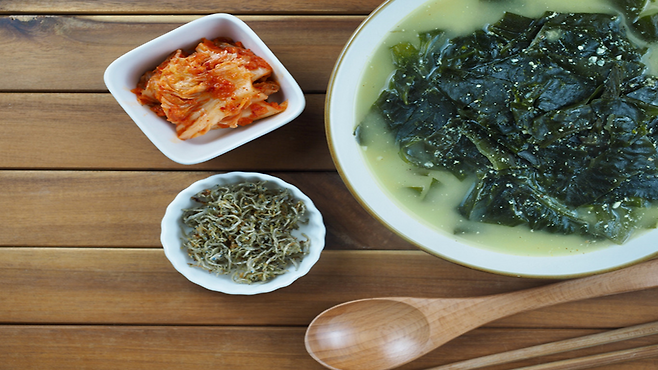 ๊ตญ๋ฌผ์ ๋ง๊ฒ ๋์ด๊ณ , ์ผ๋ถ์ ๊ตญ๊ฐ์ฅ์ด๋ ์๊ธ์ ์ต์ํ์ผ๋ก ์ฌ์ฉํด ์กฐ์ ํ๋ค.