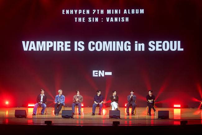 엔하이픈(정원, 희승, 제이, 제이크, 성훈, 선우, 니키)은 지난 30일 서울 강남구 코엑스 오디토리움에서 글로벌 상영회 'VAMPIRE IS COMING in SEOUL'을 열고 약 1000명의 엔진(ENGENE.팬덤명)과 만났다.