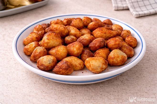 다 튀겨진 감자는 건져내어 기름을 충분히 빼야 바삭함이 오래 유지된다. 취향에 따라 매콤한 가루 양념을 뿌리거나 칠리소스를 곁들이면 강릉 명물 부럽지 않은 훌륭한 간식이 된다.