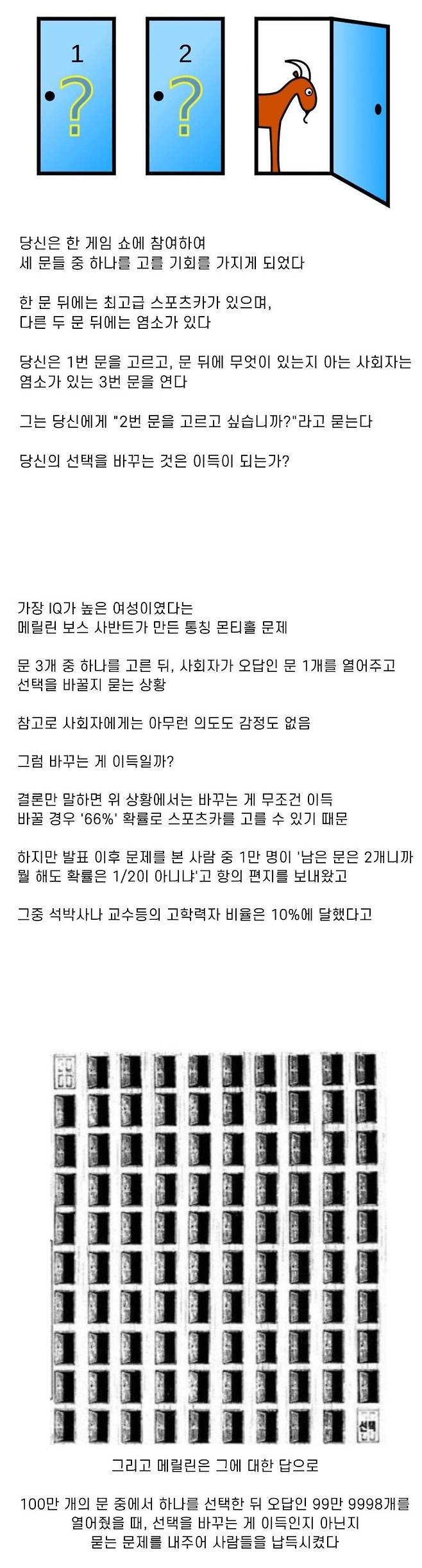 저 100만개 문으로 이해했다는게 더 신기하네 ㅋㅋㅋㅋㅋㅋ