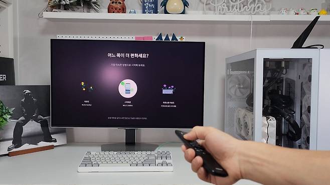 모니터를 사용하면서 가장 어려운 부분이 바로 설정메뉴입니다. 스마트 티비 기능을 탑재하고 있기 때문에 스마트폰은 물론, 제공된 리모컨으로 간편하게 기능을 설정할 수있어 정말 편리합니다. 초고가의 게이밍 모니터라도 모니터를 기능에 맞추어 설정하거나 외부입력을 연동하려면 힘들게 보이지 않는 조이스틱을 이용하여 설정해야 하지만, 스마트 기능을 탑재한 G8(G80SD)는 편리하고 간편하게 설정이 가능합니다.
