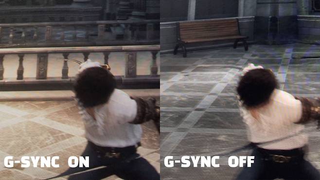 G-SYNC기능을 여러번 찰영하고 동일 한 동작에서 G-SYNC기능의 차이는 연속에선 확인하기 힘들지만 프레임을 하나하나 비교하니 차이는 분명히 존재했습니다. 깨짐 영상이 미미하게 적어져서 그래픽 품질을 올려주고, 떨림이나 떨어지는 주사율을 맞추어 주니 게임을 오래 할 경우 눈의 피로도를 줄이고, 부드러운 플레이를 할수 있으니 G-SYNC기능을 활성하하는 것이 좋겠습니다.
