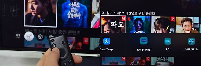 제가 사용하면서 가장 마음에 들었던 것이 Samrt Things입니다. 삼성 삼성계정에 가입하고 스마트폰과 연결하면 리모컨으로도 활용할 수 있으며, Ai 기능을 통한 한누에 찾고 즐길 수 있는 콘텐츠를 추천해줍니다.