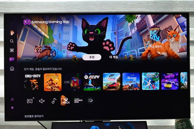 스마트 티비에 최근 탑재된 게이밍 허브 기능은 컴퓨터 없이도 게임이 가능한 게이밍 허브를 지원하고 있어 특정 게임을 별도로 설치하지 않아도 정기 구독을 통해 다양한 게임을 모니터 하나로 즐길 수 있는 장점을 가졌습니다. 포터블처럼 가지고는 다니기 힘들지만 게이밍 모니터로 게이밍 허브는 티비보다 더욱 생생하고 높음 몰입감을 선사합니다.