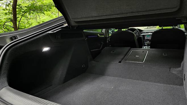 또, GT카는 기본적으로 실용성을 지니고 있어야 한다. 5도어 형태의 아테온은 뛰어난 공간활용성을 자랑하기도 했다. 시원한 개방감을 보여주는 해치게이트, 트렁크 공간 자체도 상당히 넓지만 시트를 폴딩하면 '차박'까지도 가능할 듯 하다. 웬만한 SUV보다는 바닥 면적이 넓다. 굳이 차박이 아니더라도 넓은 크기의 트렁크 공간은 기나긴 여정에 필요한 많은 짐들을 싣기에 무리가 없어 보인다. 패스트백 루프는 2열 공간을 희생시킨다고 하지만, 결과적으로 트렁크 공간을 늘어나는 장점이 생기기도 한다.
