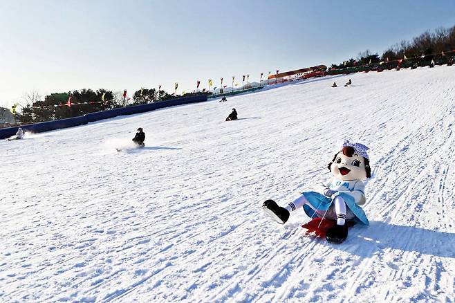'아이들 나라'라는 이름의 눈썰매장은 어린이들의 눈높이에 맞게 설계되어 있어 가족 단위 방문객들에게 인기가 높습니다.